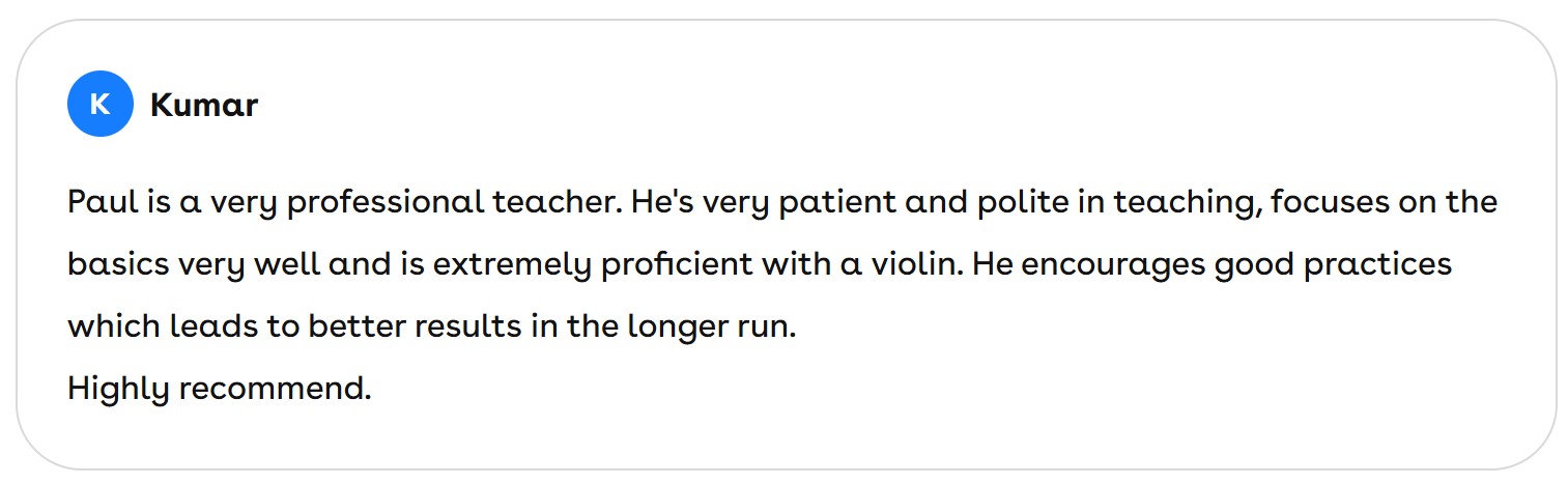 My name is Paul Lazarus, and I've been playing the violin for over 14 years.